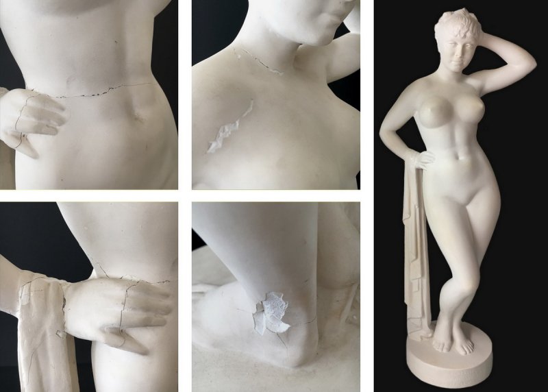 Much like other decorative objects made from this material, plaster objects are prone to cracks, chips and dings because of the fragile nature of plaster. Replacing a cherished plaster with something comparable may be difficult, we are able to restore your art.